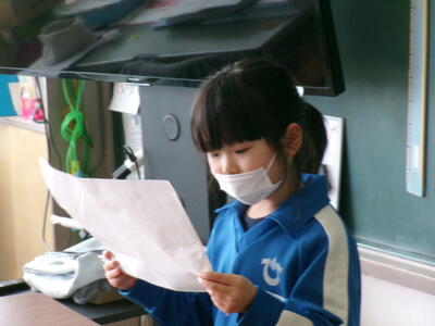 聞きやすさを考えて、笑顔で発表しました。聞き方も、とてもじょうずです。